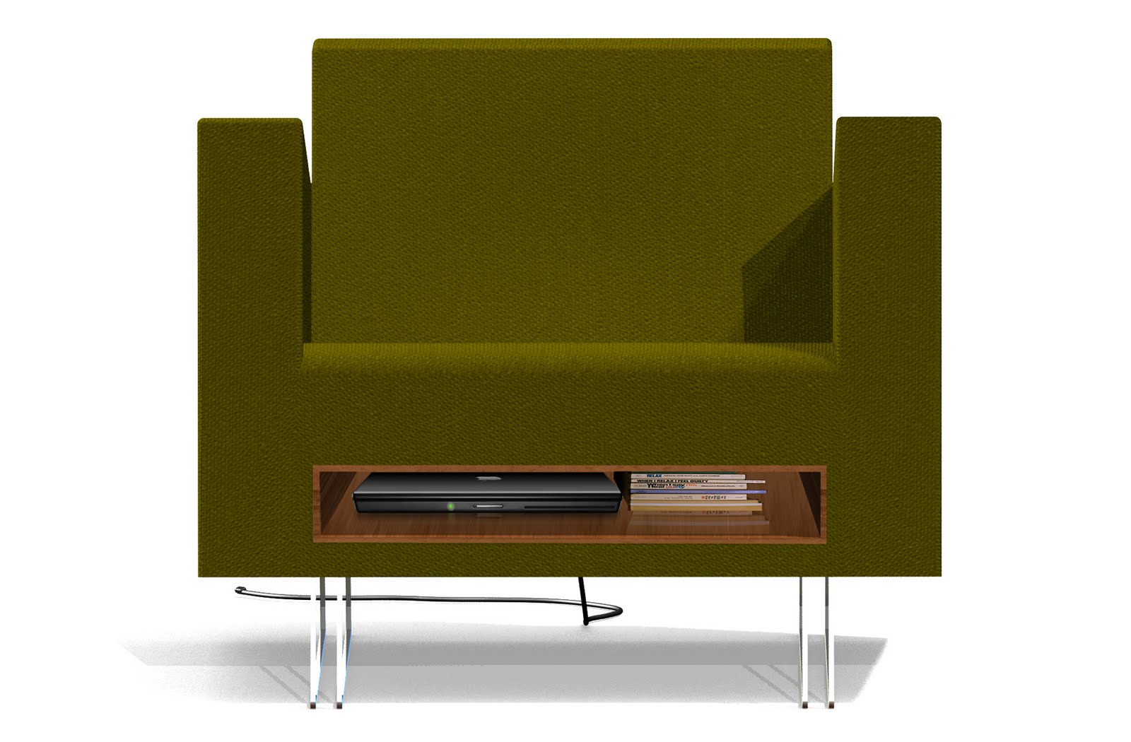 The LapChair was inspired by my friend Jon, who was always looking for a place to to store and charge his laptop. To help connect the chair to modern times it features a retractable power cord. The power cord connects to a storage shelf that is accessible from the front of the chair, allowing quick and convenient access power for electronics.